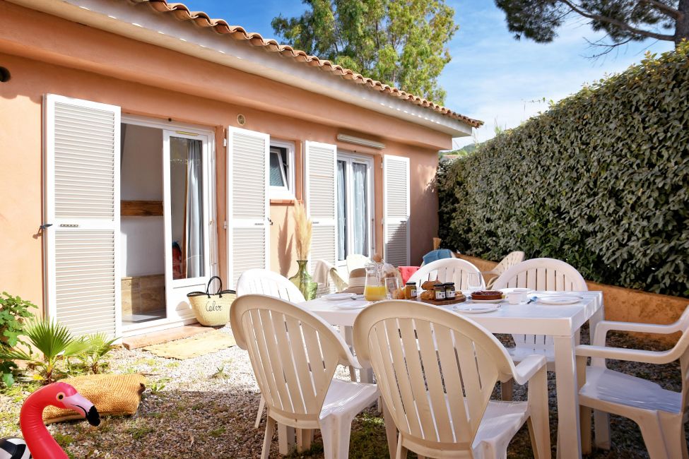 ainsi qu'une petite cour extérieure avec son mobilier de jardin.