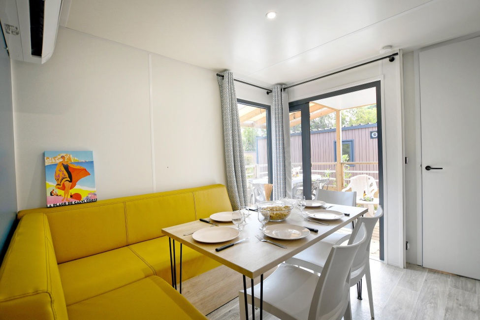 Entièrement climatisé, il dispose d'un séjour avec une cuisine équipée, une table à manger ainsi qu'une banquette pour regarder la télévision.